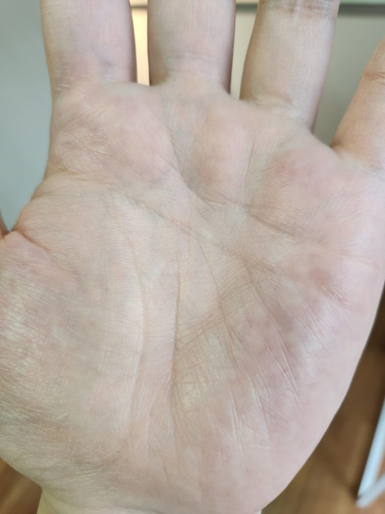 ちなみに米井の場合は左手がハッキリとマスカケで、右手はここ数年くらいでほんのりとつながってきた感じです。(右手に関してはもともと横一文字にくっついていませんでした)